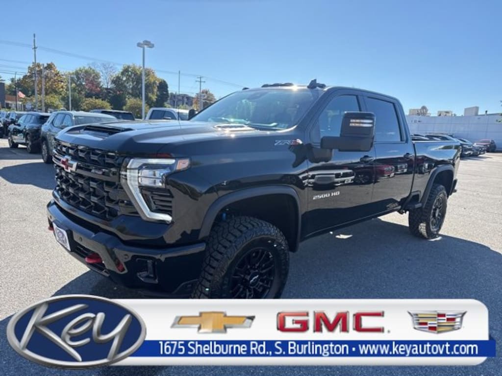 Black 2025 Chevrolet Silverado 2500HD ZR2 4WD 10-Speed Automatic Duramax 6.6L V8 Turbodiesel 10-Speed Automatic, 4WD, Jet Black/Graystone Leather.